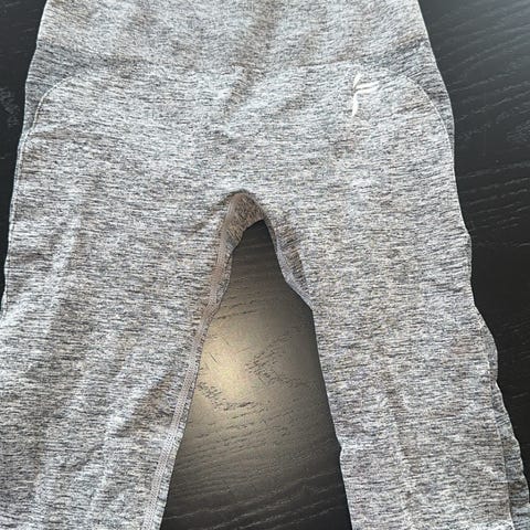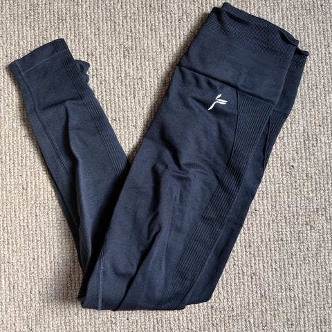 Famme treningstights for dame i størrelse XS. Tightsen er grå og laget i et elastisk materiale som egner seg til fitness og annen trening. Den har høyt liv og søm med rynkedetalj bak. Logo er plassert på benet og ved ankelen. Passer til bruk på treningssenter, hjemmetrening og annen fysisk aktivitet.