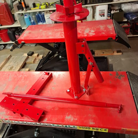 Trapp for å sette på hjulet selges. Kan stilles inn for forskjellige hjul og er kjekk hvis bilen er litt høy og du trenger å ta ut for eksempel ski av en skiboks.
