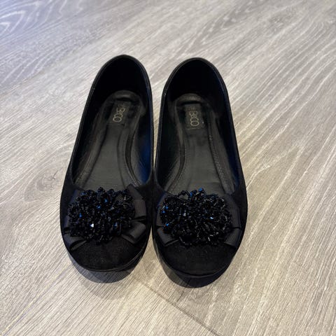 & Other Stories ballerinasko i størrelse 38. Skoene er svarte med blondedetaljer og har rund tå og tynne remmer over vristen. Yttermaterialet består av tekstil med blondepreg, mens innersålen er glatt og lett polstret for komfort. Passer til bruk til hverdags og til mer pyntede anledninger der man ønsker lave sko.