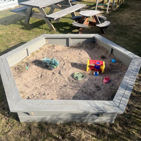 Sandkasse gis bort