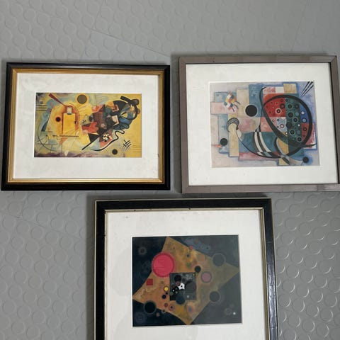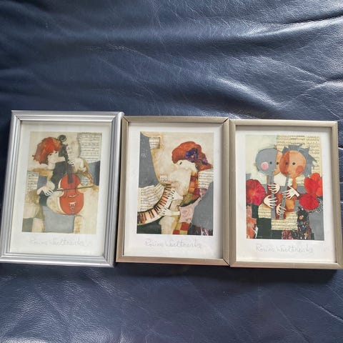 Bildet er malt på små klistremerker i 1972. 12x12cm. Enkel ramme 31x41cm. Susan Hiller var en meget anerkjent multimedia kunstner som er representert i en rekke betydelige museer. F.eks. i London i Tate Gallery og British Museum, i Washington, Sidney og mange flere steder. I 1999 hadde hun en installasjon på Hennie Onstad og fikk mye oppmerksomhet. Man kan lese mye om Susan Hiller på nettet. Jeg fikk bildet i gave i 1974 av min søster som var en nær venninne.