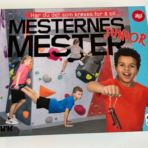 NRK Mesternes mester Junior brettspill. Spill basert på TV-programmet der deltakerne utfører ulike fysiske og mentale utfordringer tilpasset barn. Egnet for flere spillere og familiespill. Passer for junioralder som vist på esken.