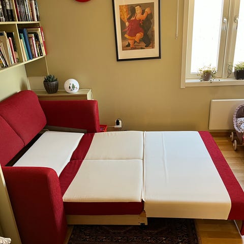 Overmadrass dobbel (ikke på bildet) kan følge med om ønskelig. God lagringsplass i sjeselong (bilde kun eksempel). Må hentes.