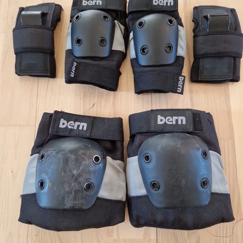 Settet består av polstrede beskyttere med harde plastskall og justerbare stropper med borrelås for tilpasning rundt leddene. Egnet som beskyttelse ved aktiviteter som rulleskøyter, skateboard eller sparkesykkel, der ekstra støtte og støtdemping rundt knær, albuer og håndledd er ønskelig.