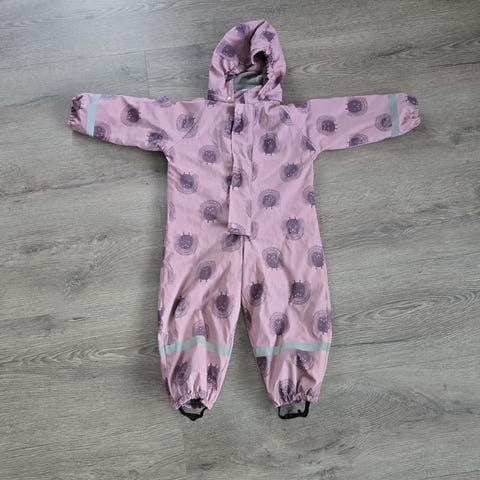 Name it parkdress for jente i størrelse 98. (2-3 år). Dressen er lilla med mønster og har forsterkede felt på knær og bak. Den er laget i polyester og har hette samt glidelås i front for enkel av- og påkledning. Egnet som yttertøy for barn i barnehage- og utelekalder.