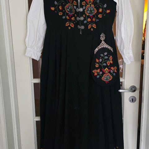 Hel og fin bunad etter min mor , størrelse M/L, med veske , lue , cape og bunadpose
