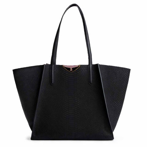 Vesken er i svart skinn med metalliske detaljer og glidelåser. Den har doble hanker og avtagbar/justerbar skulderrem, som gjør at den kan bæres både i hånden og over skulderen. Designet har karakteristiske nagle- og glidelåsdetaljer samt logo foran. Passer til daglig bruk eller skole med plass til skolepc og andre ting.