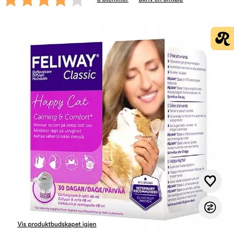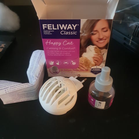 Feliway Classic Happy Cat duftdiffuser for katt. Elektrisk diffuser som brukes med Feliway Classic refillflaske. Selges uten duft. Vi har kun brukt det de første 30 dagene med katten vår. Den er altså som ny. Duten må kjøpes separat i dyrebutikken.