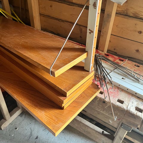 Noen bruksmerker som evt kan pusses ned og oljes på nytt. Har et par ekstra hyller til seksjonen i tillegg.
