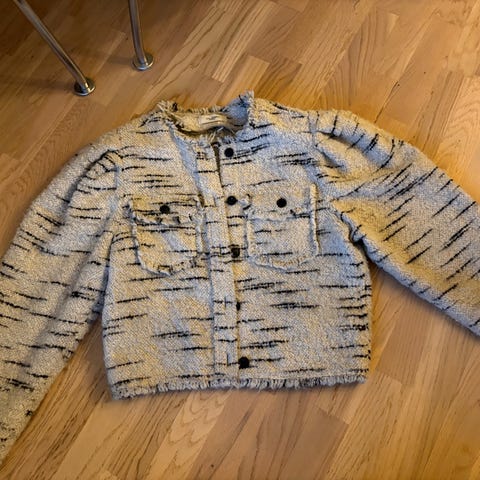 Jakken har glidelås dersom man ønsker å lukke den, men er også veldig fin brukt åpen.