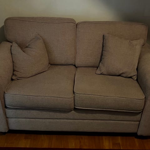Fin og praktisk 2-seters sofa i nøytral grå farge selges. Sofaen har et tidløst design som passer godt inn i de fleste hjem, enten det er i stue, gjesterom eller hybel.