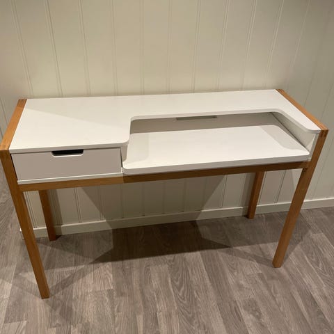 "Slim design" skrivebord med en "sliding laptop worktop". Nyttig hvis du trenger plass i rommet.