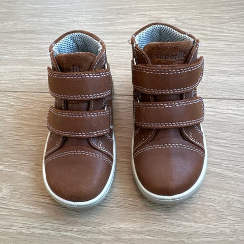 Pent brukte Superfit sko i ekte skinn selges. Brunt skinn og Goretex som gjør at skoene er vanntette og perfekte nå til våren. Fleksibel såle og borrelås gjør skoene lette å ta på og behagelige å ha på. Har vært en favoritt i huset men er dessverre blitt for små. Pent brukt og uten skader.