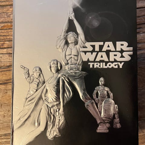 Star Wars originaltrilogien VHS-filmsett. Pakken inneholder tre videokassetter med de tre filmene i den opprinnelige Star Wars-trilogien, hver i egen kassettboks. Formatet er VHS, egnet for avspilling på videospiller som støtter dette formatet. Egner seg for samlere eller for de som ønsker filmene i originalt videokassettformat.