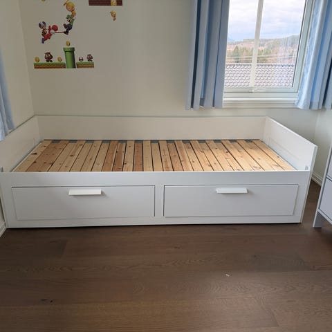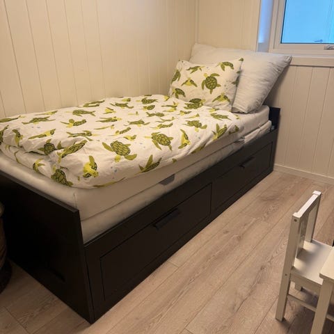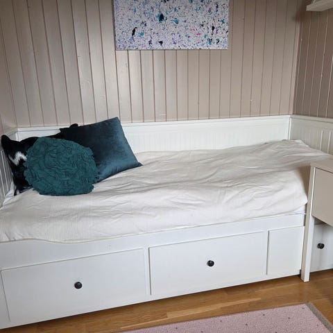 Fin enkelt seng fra ikea, som kan trekkes ut til dobbelseng