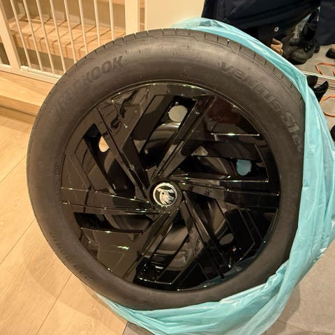 Selger originale Skoda Enyaq sommerhjul. 2x 255/50R19 og 235/55R19. Bra dekkmønster. Varierer 5-6mm. Bridgestone-dekkene holder fint en sesong til, antakelig to også alt ettersom kjøremønsteret.