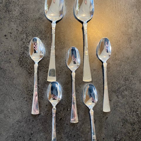 Selger 6 spiseskjeer som jeg ikke tror er brukt billig.