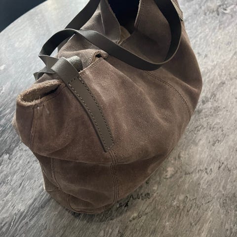 Brun skinnveske, semsket, fra Depeche. Mykt og fint skinn. Brukt et par dager, som ny. Kjøpt for 2300 i mars 2026.