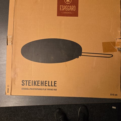 Espegard steikehelle i rustfritt stål med diameter 45 cm. Steikehellen er egnet til matlaging utendørs over åpen ild eller grill. Laget i rustfritt stål som gir jevn varmefordeling og enkel rengjøring. Passer til steking av for eksempel kjøtt, fisk, grønnsaker og pannekaker på tur eller i hagen.