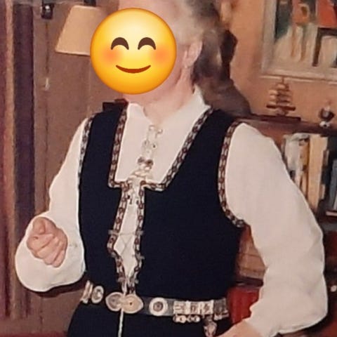 Damebunad/folkedrakt fra Folldal ca. str. 48-50, brukt noen få ganger. Stakk og liv med belte, cape og brodert skjorte.