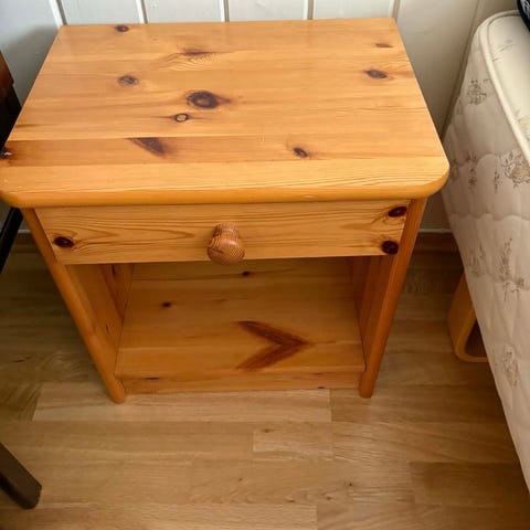 Kjempefint nattbord i furu selges med tungt hjerte. Lite og nett.