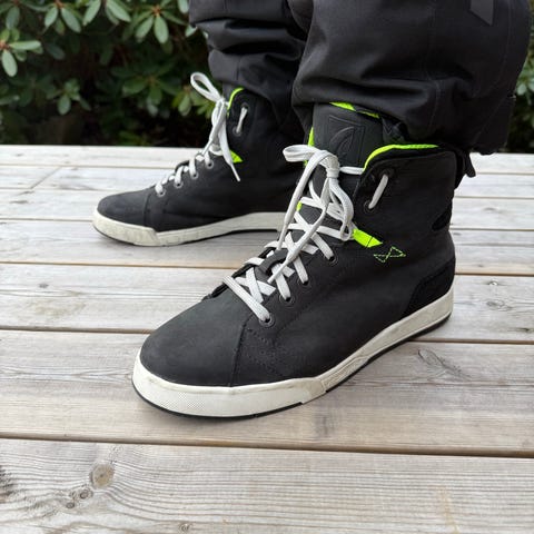 Dette er den ultimate joggeskoen for moto. En joggesko for når du er av sykkelen og et fotplagg for når du er på sykkelen. Med ankelbeskyttelse og integrert tåboks, inkludert klassisk styling, er RST HiTop en ekte multifunksjonell sko. Tilgjengelig i både sommer- og vinterversjoner.