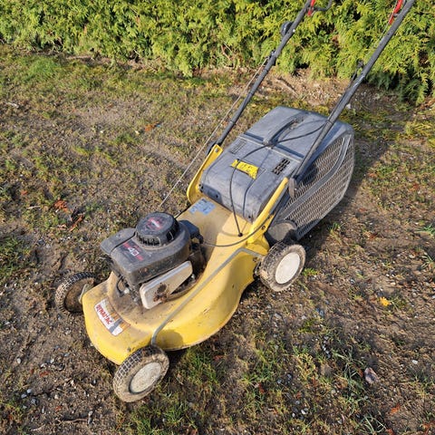 Feiemaskin med Honda motor. Har stått ute en tid så den må gåes over med smøring og maling.