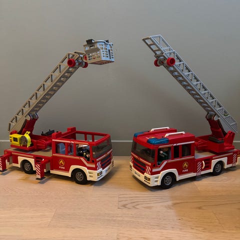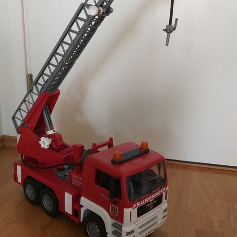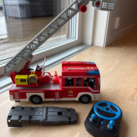 Playmobil City Action stigeenhet (brannbil) selges. Meget pent brukt, men lys og sirener virker ikke, da batteriene har stått i for lenge. Du får også med et lite brannhelikopter, som er kjøpt utenom.