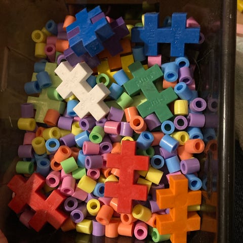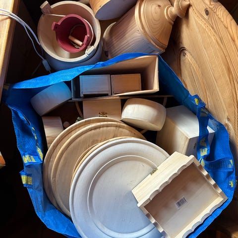 Byggeklosser byggesett i tre i naturfarge. Settet består av ulike staver, klosser og vinkeldeler som kan settes sammen til enkle konstruksjoner. Delene er laget i treverk med glatte kanter. Egner seg til lek og bygging for barn som liker å konstruere og utforske former og strukturer.