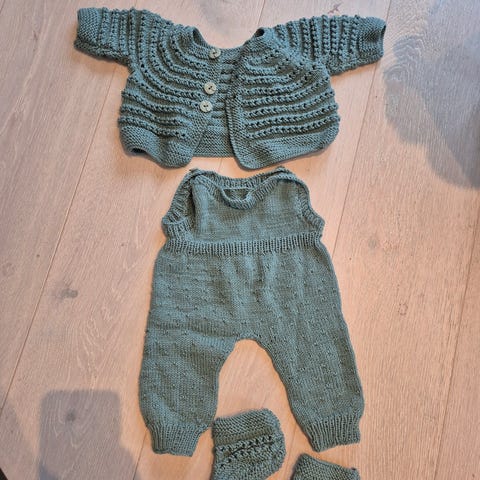 Hjemmestrikket babyklær.