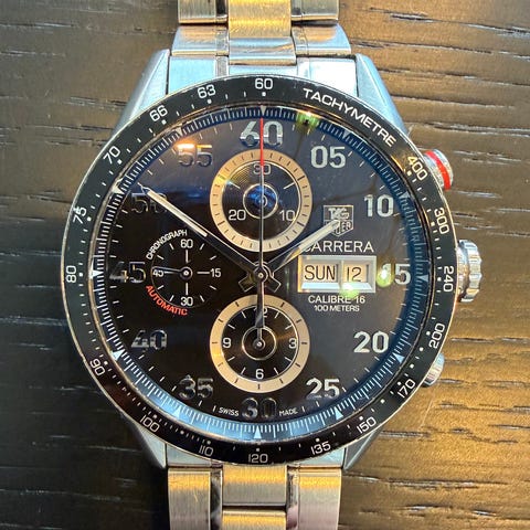 Pent brukt, noe slitasje på reimen. Kjøpt av selger på Bjerke i 2006, har original eske og kjøpsbevis med serienummer (jeg har slettet serienummeret på bilde med AI, det står skrevet på kortet).