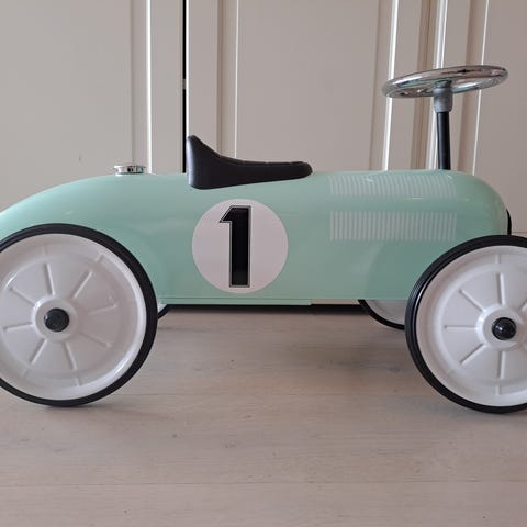 Dansk design lekebil i retro stil i en nydelig lys turkis/mintgrønn farge. Gøy for barn i barnehagealder.