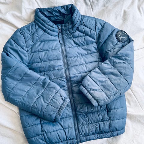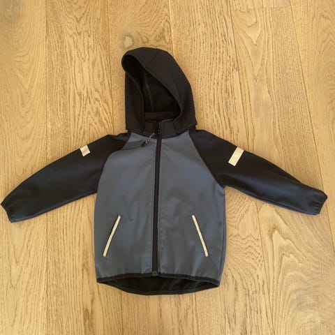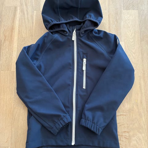 Name it jakke i størrelse 116. Jakken er blå og laget i polyester, med hette og glidelås foran. Hetten er lett å ta av å på. Jakken har elastikk ved håndleddene og refleksdetaljer både foran bak. Egnet som ytterjakke i sommer/overgangssesong eller milde dager. Fleece-stoff inni jakken.