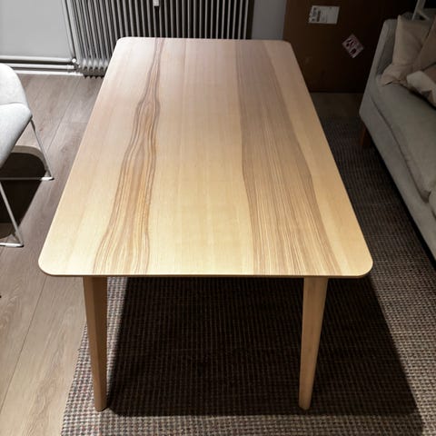 Familien har vokst og vi trenger større spisebord, derfor selger vi bordet. Fint bord i lys eik som passer fint om man har begrenset plass.