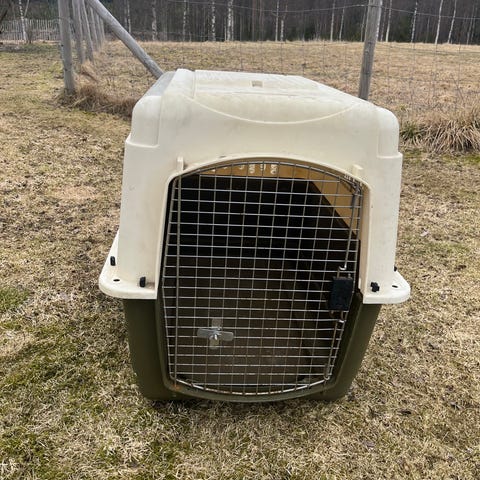 Kjøpt nytt av meg for 1,5år siden, buret er så å si ubrukt. Det har vært en hundeseng i det så tispa vår har kunnet gått dit når hun selv har ønsket. Mer eller mindre stått som oppbevaring hele oppholdet her. Selges da det tar for stor plass til at det blir så lite brukt.
