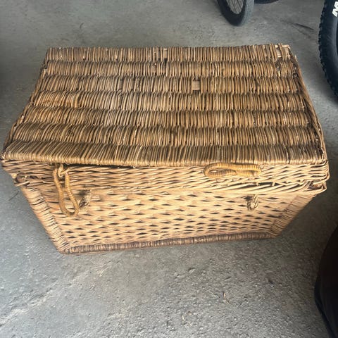 Trukket i immitert skinn. Kjøpt i Dubai i 2004. Selges høystbydende.