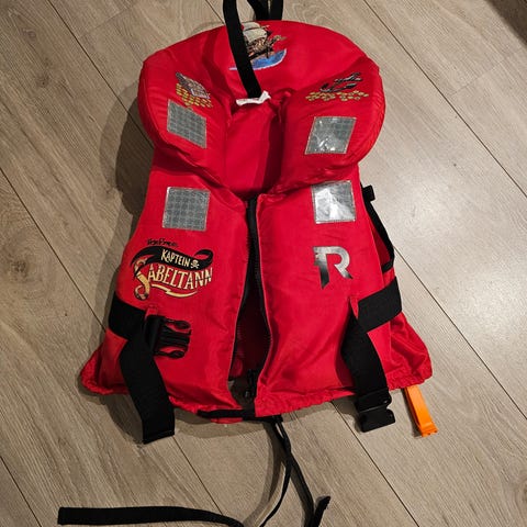 Regatta Kaptein Sabeltann redningsvest. Veldig lite og pent brukt. Kjøpt ny av oss. Alltid vært tørr og har ingen merker. Fløyten har noen små merker.