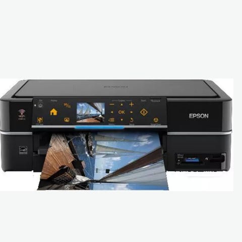 Skriver, scanner og kopimaskin i ett. Den har WI-FI tilkobling i tillegg til USB. I stedet for blekkpatroner har denne skriveren en tank som du fyller blekk på. Da slipper du at blekkpatronene tørker ut. Det følger med et sett med fire flasker blekk. Dette har alene en verdi av 589,- (Elkjøp)