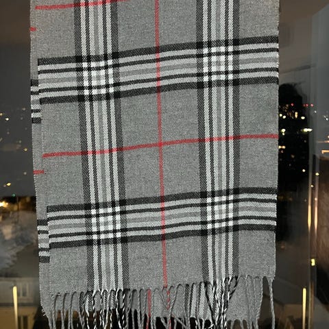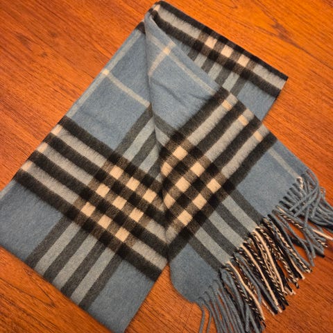 Burberry skjerf i ull i flerfarget rutemønster. Skjerfet har klassisk rutedesign med frynser i endene. Materiale er ull, som gir et mykt og varmt plagg egnet til bruk på kjølige dager. Passer til herre, men kan også brukes unisex avhengig av ønsket stil.