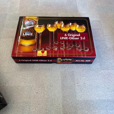 6 stk nye og ubrukte Linie aquavit glass 4 cl.