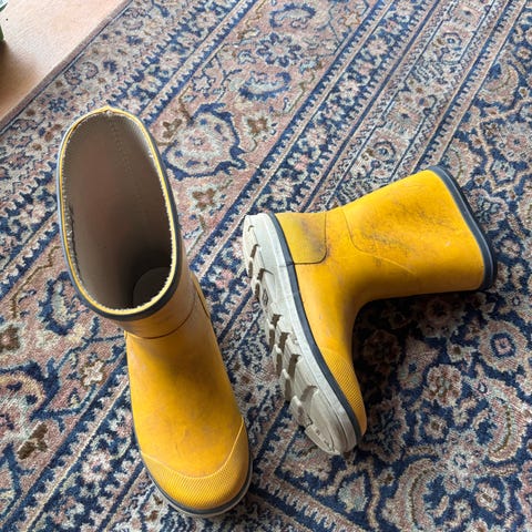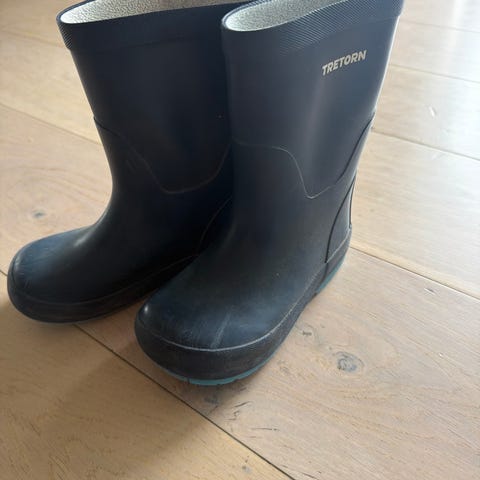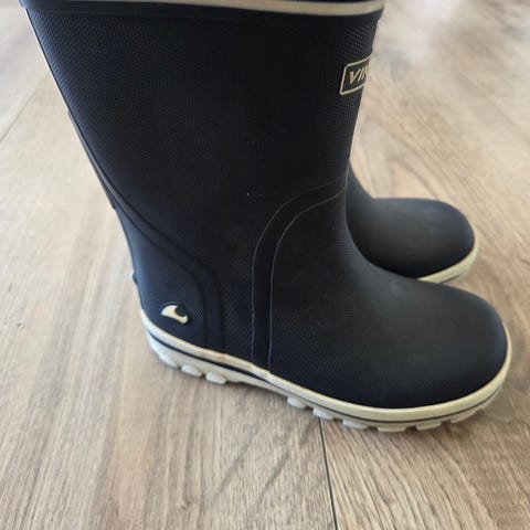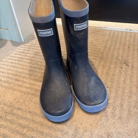 Reima gummistøvler for barn i størrelse 33. Unisex-modell i blå farge med lys kant og mønstret innsiden. Egnet til bruk i vått vær og på regnværsdager.