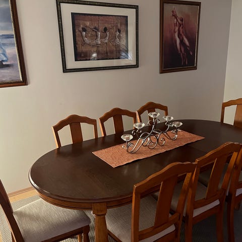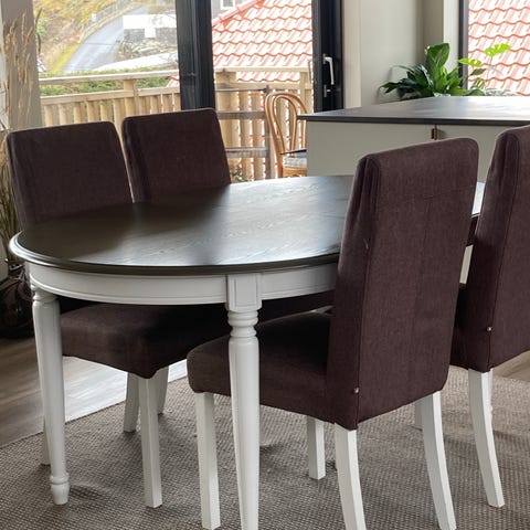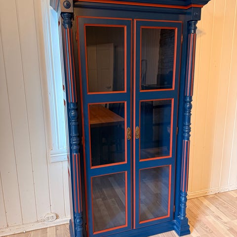 Bohus norsk spisegruppe bord med 6 stoler skjenk og vitrineskap