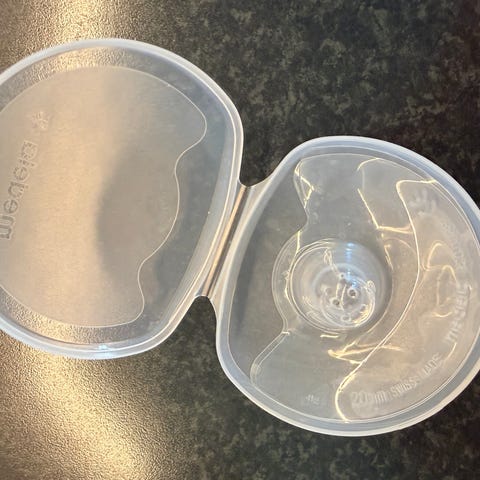 MAM ammeskjold i silikon med tilhørende plastetui for oppbevaring. Størrelse 20mm. Skjoldene er tatt ut av pakke og kokt, men ubrukt.