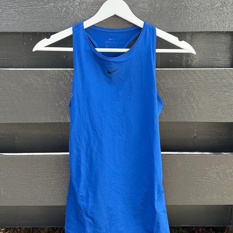Nike Dri-FIT treningstopp for dame i størrelse S. Ermeløs topp med bryterrygg, laget i teknisk Dri-FIT-materiale som transporterer svette. Pent brukt.