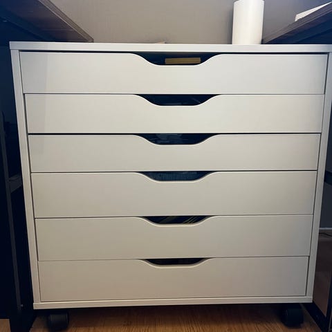 Pent brukt Alex skuffeseksjon fra IKEA. Hatt i mange år, så noen merker er å finne. Noen flekker inne i skuffene, utenpå er den plettfri.