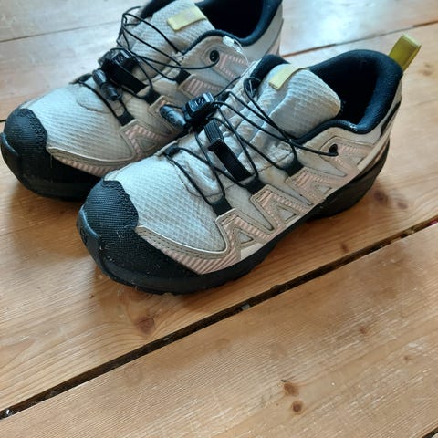 Salomon XA Pro 3D Waterproof joggesko for barn i størrelse 33. Skoene er unisex og har snøring. Fargekombinasjon i svart og grønn. Overdelen er laget i et syntetisk materiale med vannavvisende egenskaper. Sålen er grovmønstret for godt grep på variert underlag. Egnet til hverdagsbruk og aktiviteter utendørs som tur og lek.