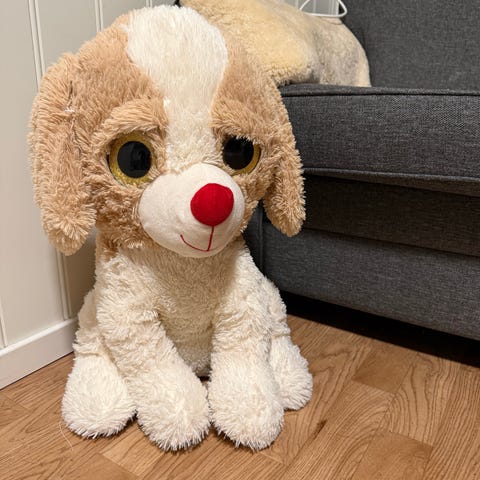 Bamse kosedyr hund stor brun og hvit