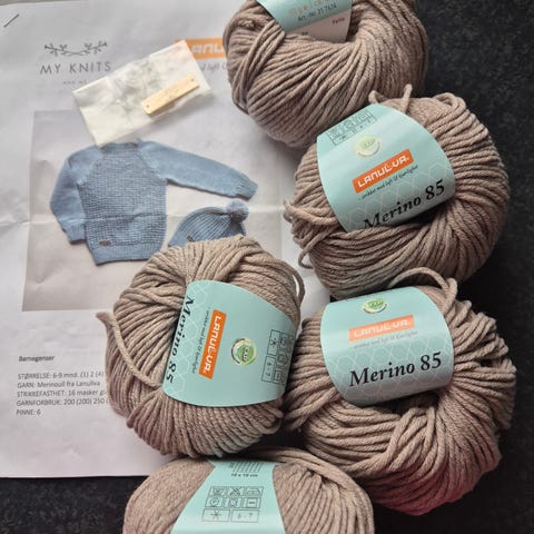 Mehamn-genser strikkeoppskrift med tilhørende garn i fargene beige og natur. Pakken inneholder trykket mønsterark med bilde av genseren samt garnnøster i tykk kvalitet egnet til modellen. Garnet er mykt og passer til strikking av genseren som vist på oppskriften. Egnet for strikkere som ønsker å lage en mønstret, oversized genser i lyse naturtoner. Garn opp til str XL