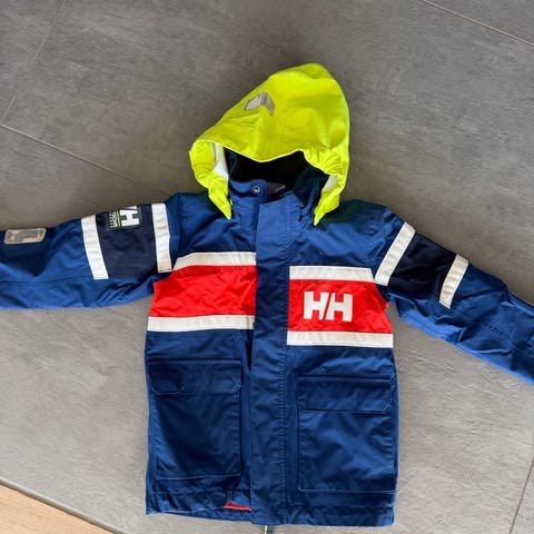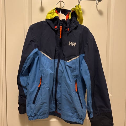 Helly Hansen allværsjakke, i størrelse 134 Jakken har glidelås i front, hette og reflekselementer. Egnet som ytterjakke til barn i omtrent størrelse 134.