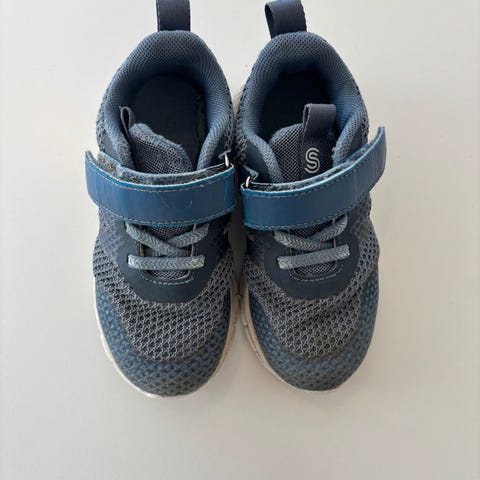 Jotunheim joggesko for barn, unisexmodell i størrelse 28. Skoene er i blå og grå farge med hvit yttersåle. Overdelen har elastiske lisser kombinert med borrelåsrem for enkel av- og påtaking. Polstret åpning og pløse gir god komfort rundt ankelen. Yttersålen har mønster for grep ved lek og hverdagsbruk. Passer til bruk i barnehage, skole og fritid.
